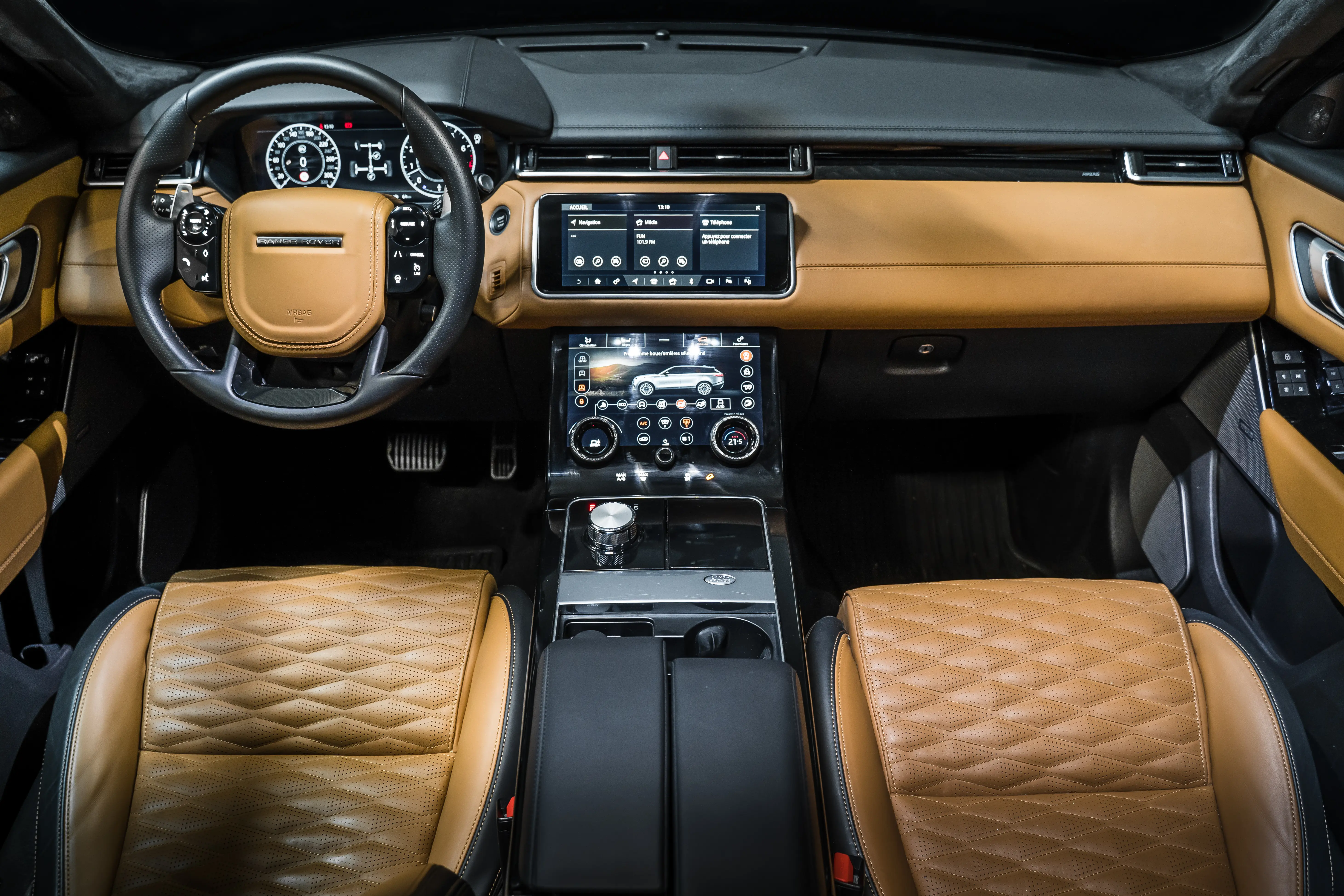 Inside, the Velar SVR offers a blend of comfort and luxury, with heated leather seats, a top-of-the-range navigation system, dual-zone automatic climate control and a 1,600-watt Meridian Surround Sound audio system. The cabin is spacious and offers great visibility thanks to the large glazed areas.